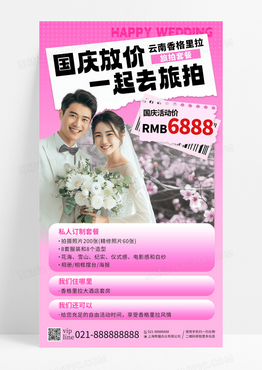 粉色国庆放价一起去旅拍私人定制国庆活动价手机海报