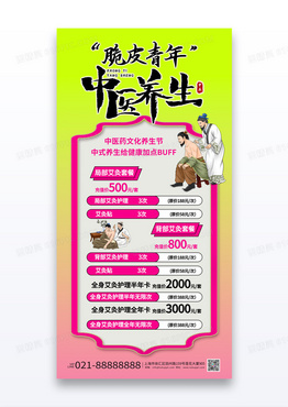 渐变绿简约脆皮青年中医养生保健艾灸海报