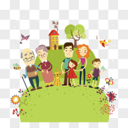 卡通人物 全家福 绿色背景 矢量图