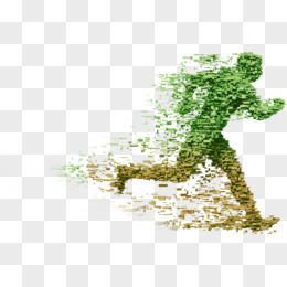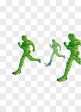 卡通男孩撑着一把绿色雨伞奔跑免抠元素