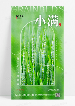 绿色玻璃风格小满小满宣传海报小满手机宣传海报