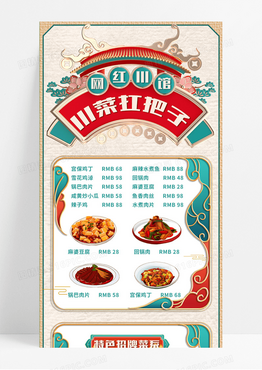 绿色国潮金属感网红川馆川菜菜单营销长图
