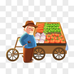 卡通鞭炮老爷爷三轮车摆摊卖菜素材