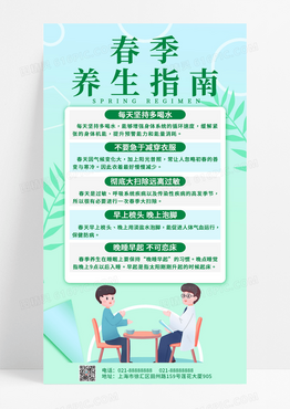 绿色多边形扁平风格春季养生指南养生海报春季养生手机文案海报