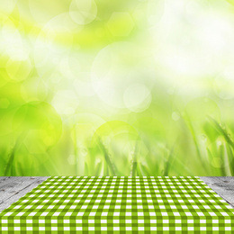 绿色格子桌布桌面绿色树叶花蝴蝶高清背景