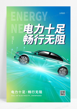 绿色光效弥散渐变电力十足畅行无阻新能源海报