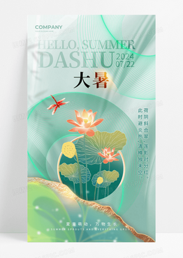 绿色光晕渐变夏季大暑节气套图宣传海报