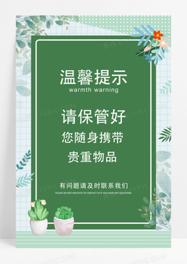 绿色小清新贵重物品温馨提示宣传海报