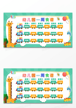 绿色卡通学校幼儿园一周食谱展板学校教育幼儿园食谱展板