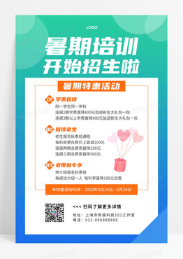 绿色简约暑期培训开始招生啦暑假班招生培训手机文案海报