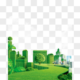 手绘绿色城市素材