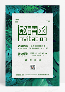 ins风绿色清新叶子植物年会质感简约邀请函海报