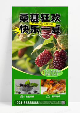 绿色简约水果园水果店桑葚果园手机宣传海报