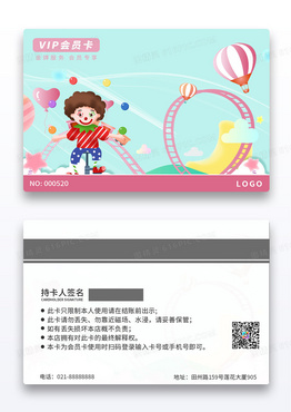 淡绿色磨砂背景儿童乐园游乐园VIP会员卡儿童会员卡贵宾卡打折