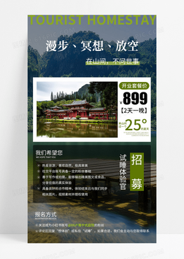 森林绿色健康生机酒店入住山间民宿宣传海报