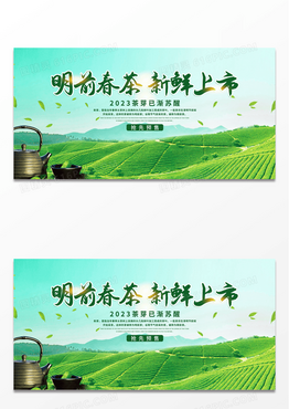 简约绿色清新山坡茶园明前春茶新鲜上市春天春茶展板春季春天春茶
