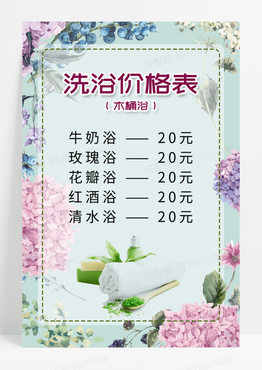 绿色植物手绘边框木桶浴美容洗浴价格表
