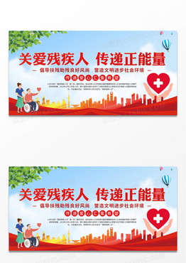 绿色红丝带爱心国际残疾人关爱残疾人传递正能量展板关爱残疾人展板设计