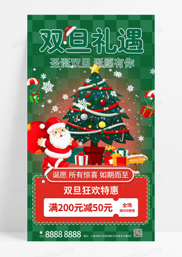绿色简约条纹圣诞老人送礼双旦礼遇诞愿有你优惠促销活动海报
