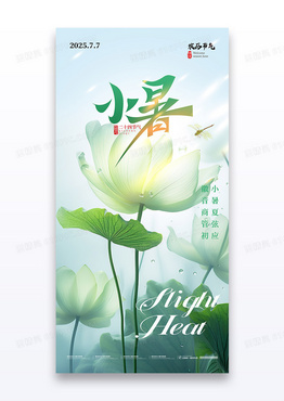 绿色透明荷叶蜻蜓二十四节气小暑海报