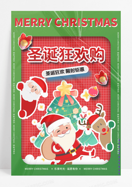 绿色圣诞节玩具盒效果促销海报