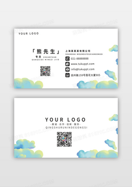 绿色简约小清新云彩卡通卡片名片