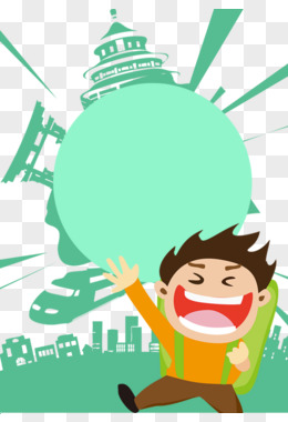 卡通手绘可爱小姐姐导游带着孩子们旅游元素