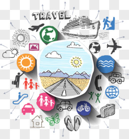 手绘卡通情侣夫妻旅游旅行免抠元素