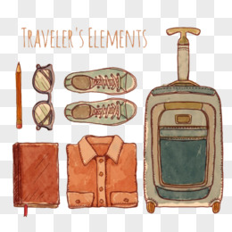 手绘皮箱旅行贴纸装饰元素