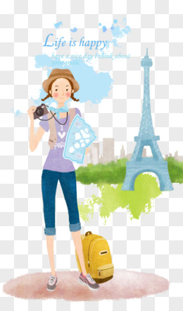 一组卡通创意出行旅游场景旅游照片免抠素材