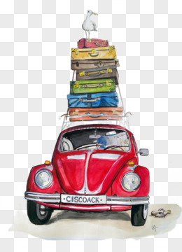 一组卡通自驾游出行旅游场景系列四免抠素材