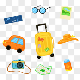 一组手绘插画夏季旅游卡通贴纸免抠元素合集