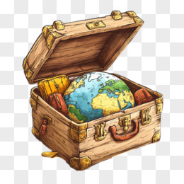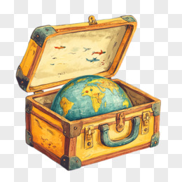 3D卡通一幅旅行地图和望远镜行免抠元素