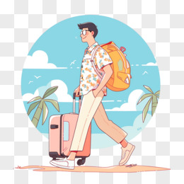 卡通风旅游穿阿拉伯白袍的男子站在帆船酒店前面免抠元素