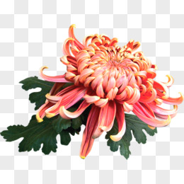 高清粉黄色菊花绿叶