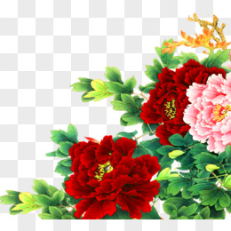 手绘粉红色牡丹绿叶