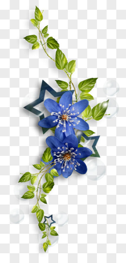 绿叶蓝色花朵气泡漂浮青藤藤蔓