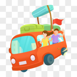 卡通风旅游三个女孩坐大巴出游免抠元素