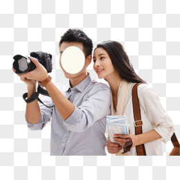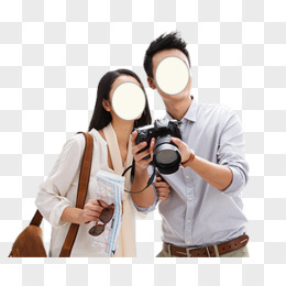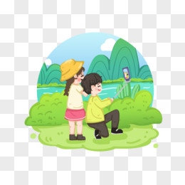 手绘节假日情侣开心出游景点拍照元素