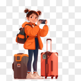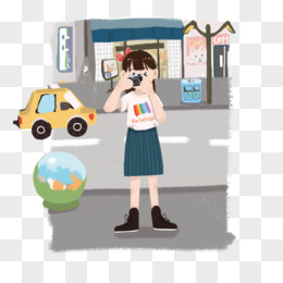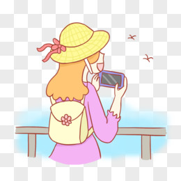 手绘插画女孩旅游拍照免抠元素