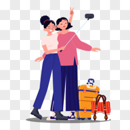 可爱小姐妹开心的自拍旅游免抠元素