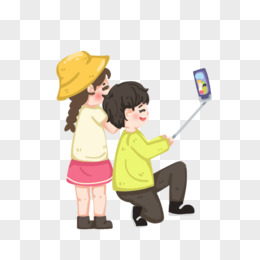 手绘卡通两人自拍免抠元素