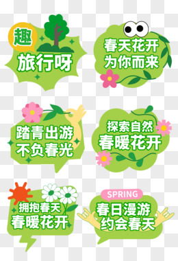 一组矢量春季春天春日踏青出游拍照手举牌原创元素合集元素