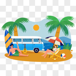 一组手绘情侣旅行徒步旅行打卡套图元素