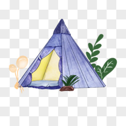 卡通手绘户外女孩搭帐篷弹吉他免抠元素