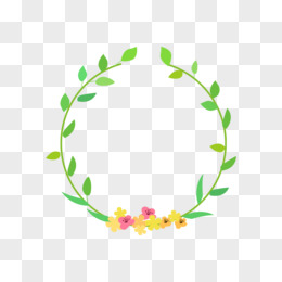 手绘植物五彩花卉森系叶子花环装饰边框素材