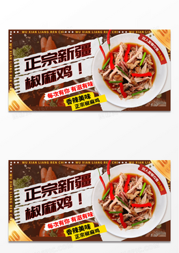 创意撕纸风大气正宗新疆椒麻鸡展板设计