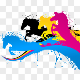 黑色水彩骏马矢量素材
