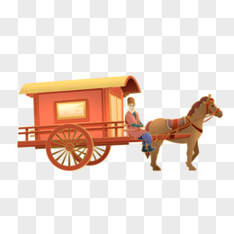 手绘国潮小厮驾着马车免抠元素