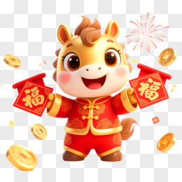 3D立体金色喜庆马年IP形象免抠元素